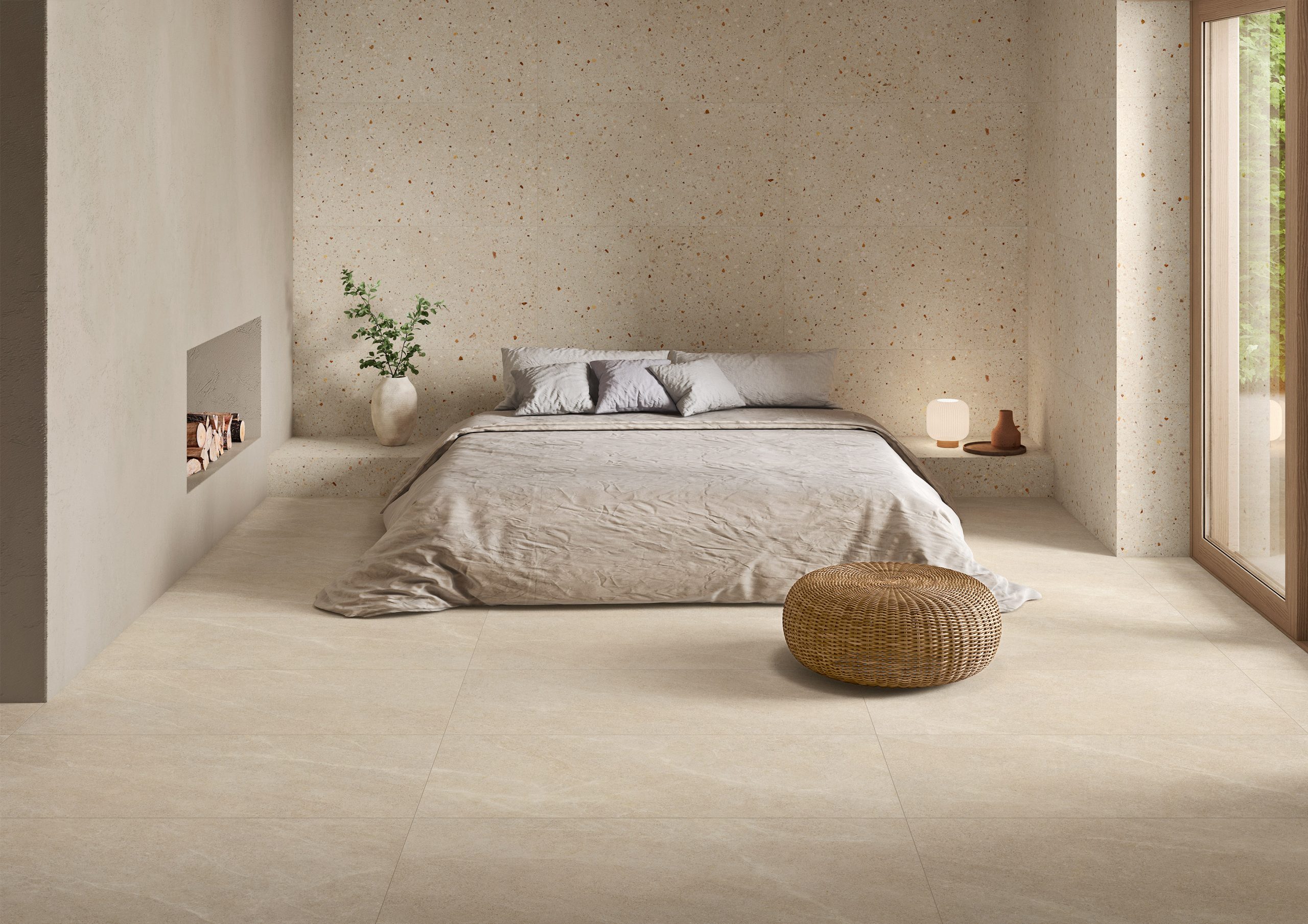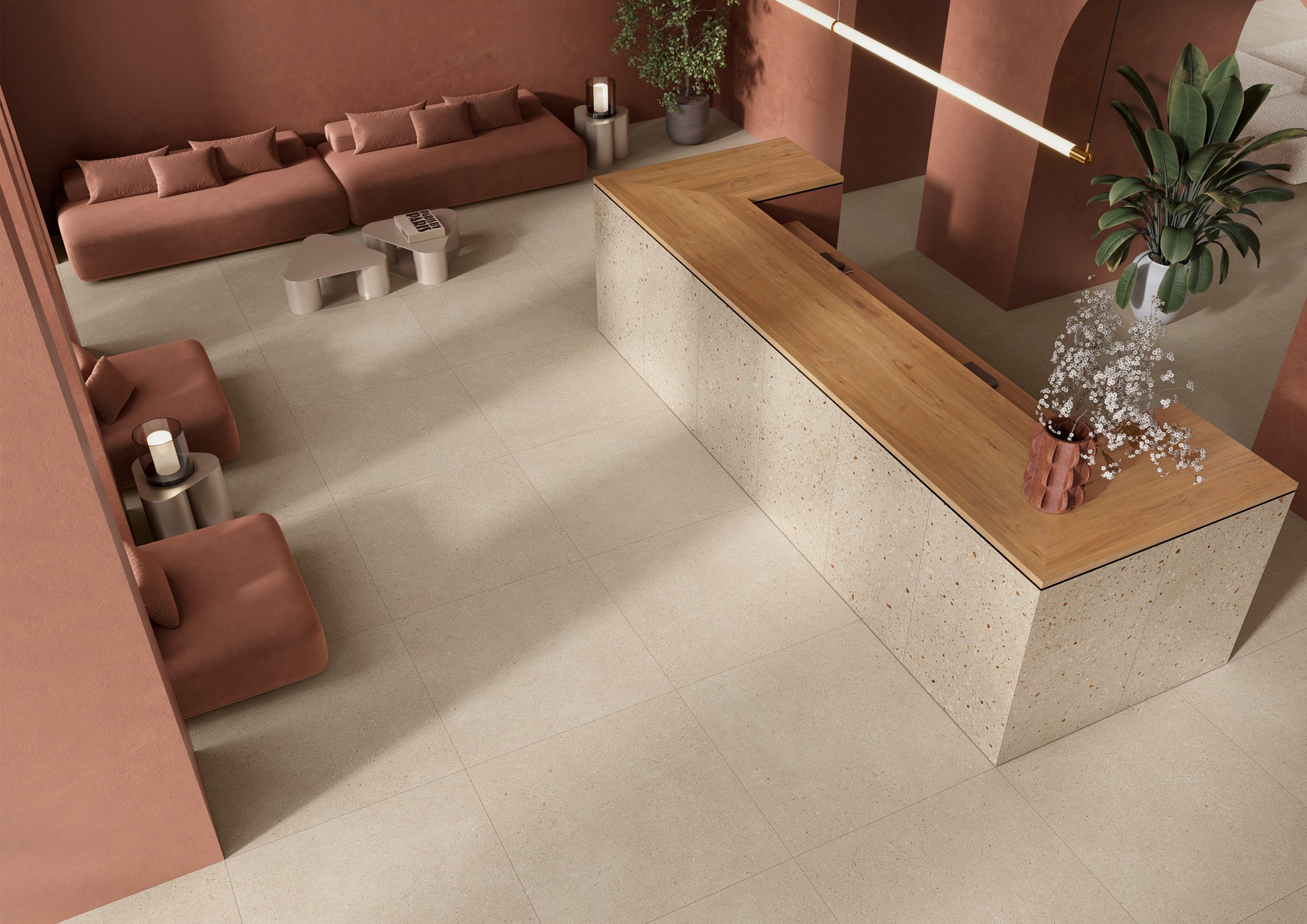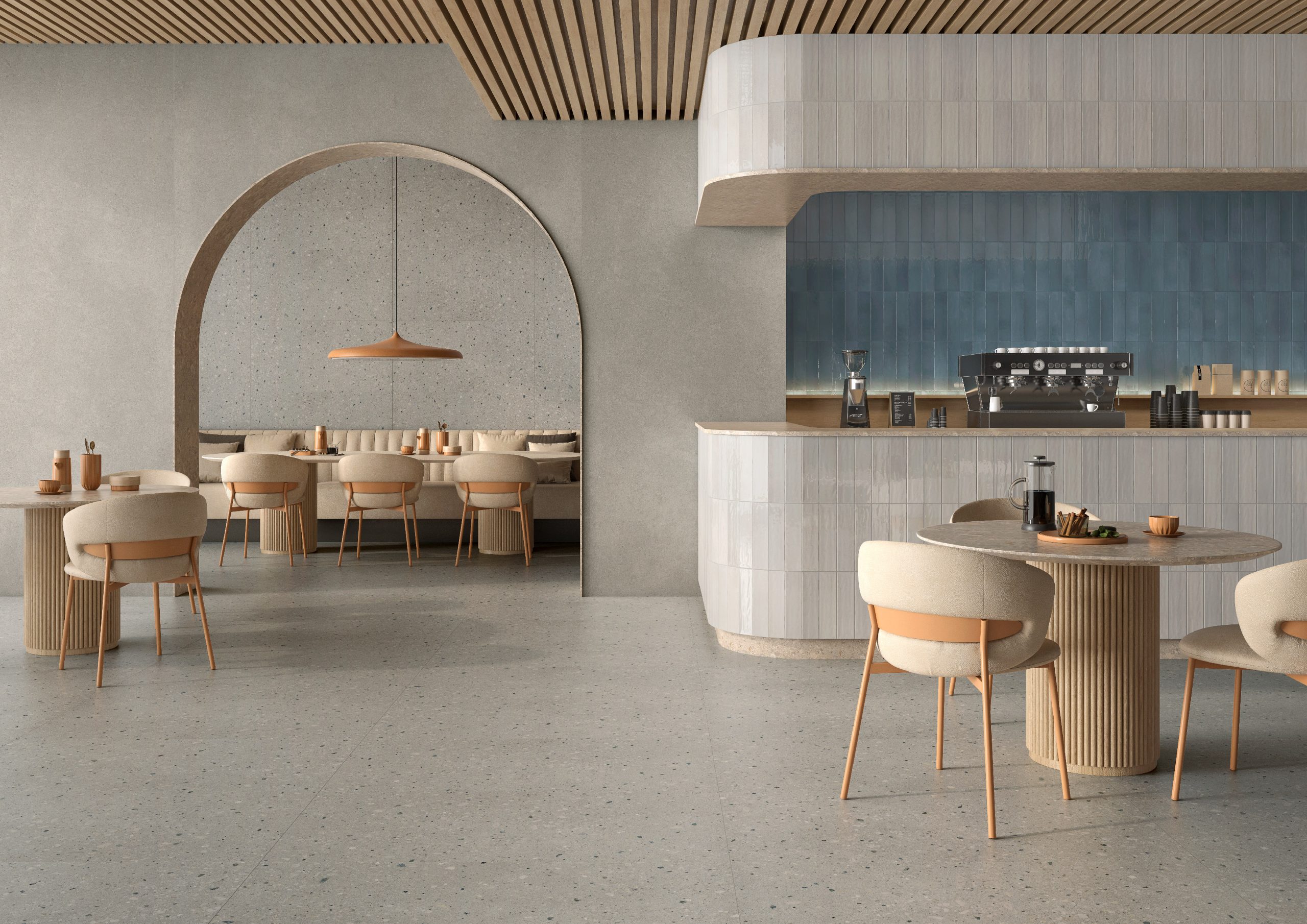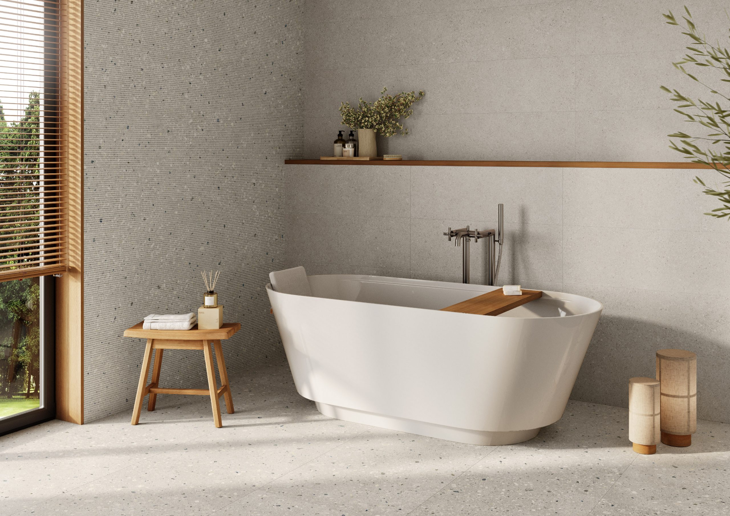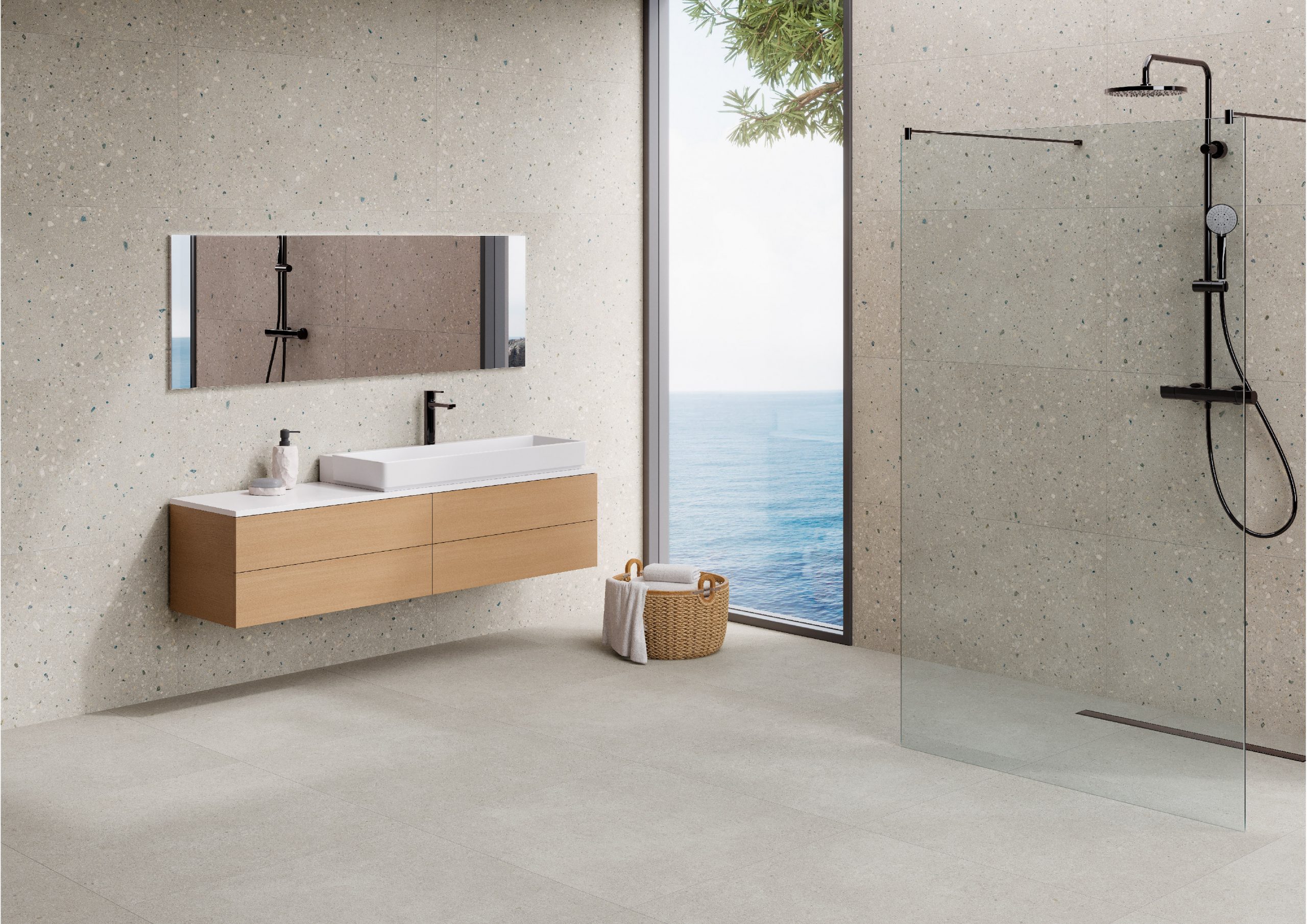 Dolce + Vita es una invitación a proyectar espacios donde el equilibrio, la creatividad y la inspiración conviven. Es diseño con alma. Es la vida que se disfruta. Como una superficie mineral suavizada por el tiempo, Dolce es una base porcelánica de estética depurada, donde reinan la armonía visual y la calma material. Con textura tenue y una paleta neutra inspirada en los tonos del cemento, se integra con naturalidad y combina sin esfuerzo. Dolce se compone de una base sólida y envolvente que se adapta sin imponer, dejando que el ambiente respire. Vita despierta los sentidos. Reinterpreta el terrazo desde una mirada actual y expresiva, con fragmentos de color que salpican la superficie como confeti sobre un lienzo. Vita es fondo y es protagonista, es base y decorado. Un dos por uno creativo. La colección se amplía con revestimientos en pasta blanca en formato 30x90R, donde destacan los decorativos Deko Dolce Beige, Deko Dolce Verde, Deko Dolce Terracota y Deko Dolce Azul. Su diseño parte de una base que evoca el trazo orgánico del papel pintado y sobre él una delicada filigrana que añade un juego visual sutil y envolvente. También en 30x90R, Suite Vita, añade un relieve lineal con surcos paralelos que recorren la superficie en textura estriada, aportando profundidad y una sensación táctil sobre la base cromática de Vita, perfecto para crear zonas destacadas o rincones que marquen el ritmo visual.
