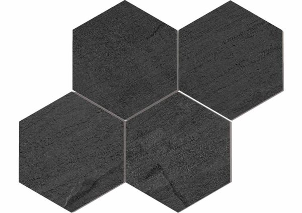 Refugio natural. Un negro intenso que es cualquier cosa menos sombrío. La elegancia natural de la pizarra, su tacto satinado y las sutiles láminas de sus capas ahondan en la naturalidad de una pieza que evoca el efecto desgastado de la piedra natural añadiéndole las inalterables prestaciones del porcelánico. Así, los interiores configurados con Terranova son perfectos para aquellos que buscan dar forma a un refugio donde todos se sientan en casa. Capaces de evocar tanto las cálidas cabañas norteñas al calor de la chimenea, como los espacios contemporáneos de alto contraste, Terranova también está disponible en un moderno formato malla hexagonal y puede usarse para pavimentos combinados y en composiciones de revestimiento y decorados.
