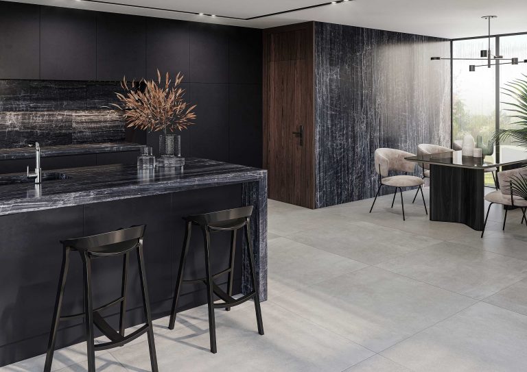 Dolomita es elegancia serena, un fiel reflejo de la piedra natural con todas las ventajas de un material de alta tecnología.
