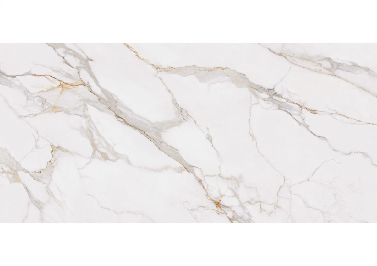 Marble Calacatta Oro ofrece una lectura contemporánea de uno de los mármoles más preciados, con su distintivo veteado en tonos visón que fluye de forma natural sobre una base blanca nívea.