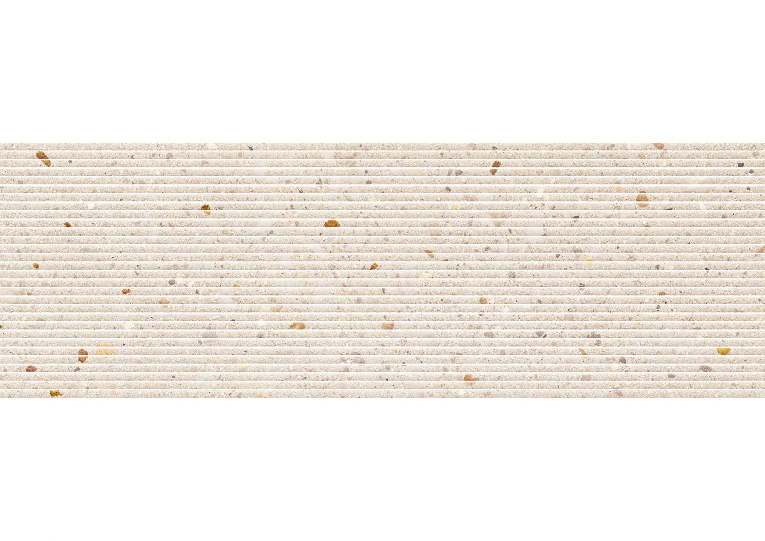 También en 30x90R, Suite Vita, añade un relieve lineal con surcos paralelos que recorren la superficie en textura estriada, aportando profundidad y una sensación táctil sobre la base cromática de Vita, perfecto para crear zonas destacadas o rincones que marquen el ritmo visual.