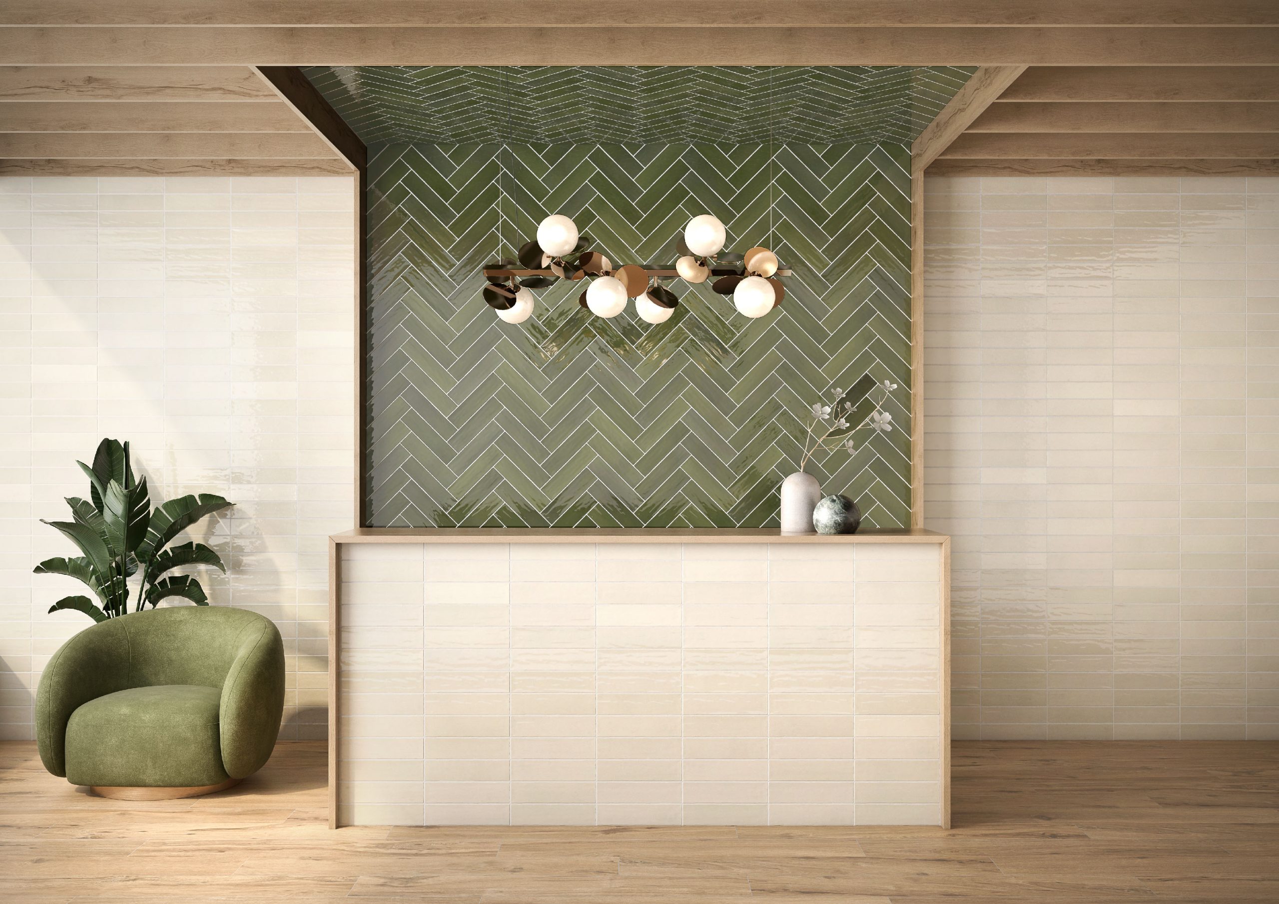 The Bar Tile collection redefines space with an intimate geometry and a glazed finish that plays with light. Each piece, smooth to the touch and with subtle shades, reveals slight undulations on its surface that capture changing glints depending on the angle of view.