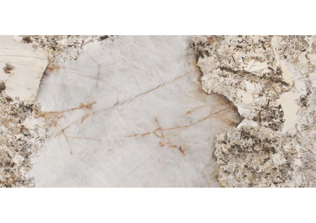 Inspired by one of the most fascinating natural stones on the planet, the Patagonia collection brings the aesthetic complexity of the quartzite of the same name to porcelain, on a luminous beige base, dotted with veins, inclusions and contrasts that seem chiselled by geology itself. The result is an explosion of nuances, a piece with a strong visual impact, where creamy waters intertwine with graphite strokes and ochre and earthy flashes, creating a unique depth.