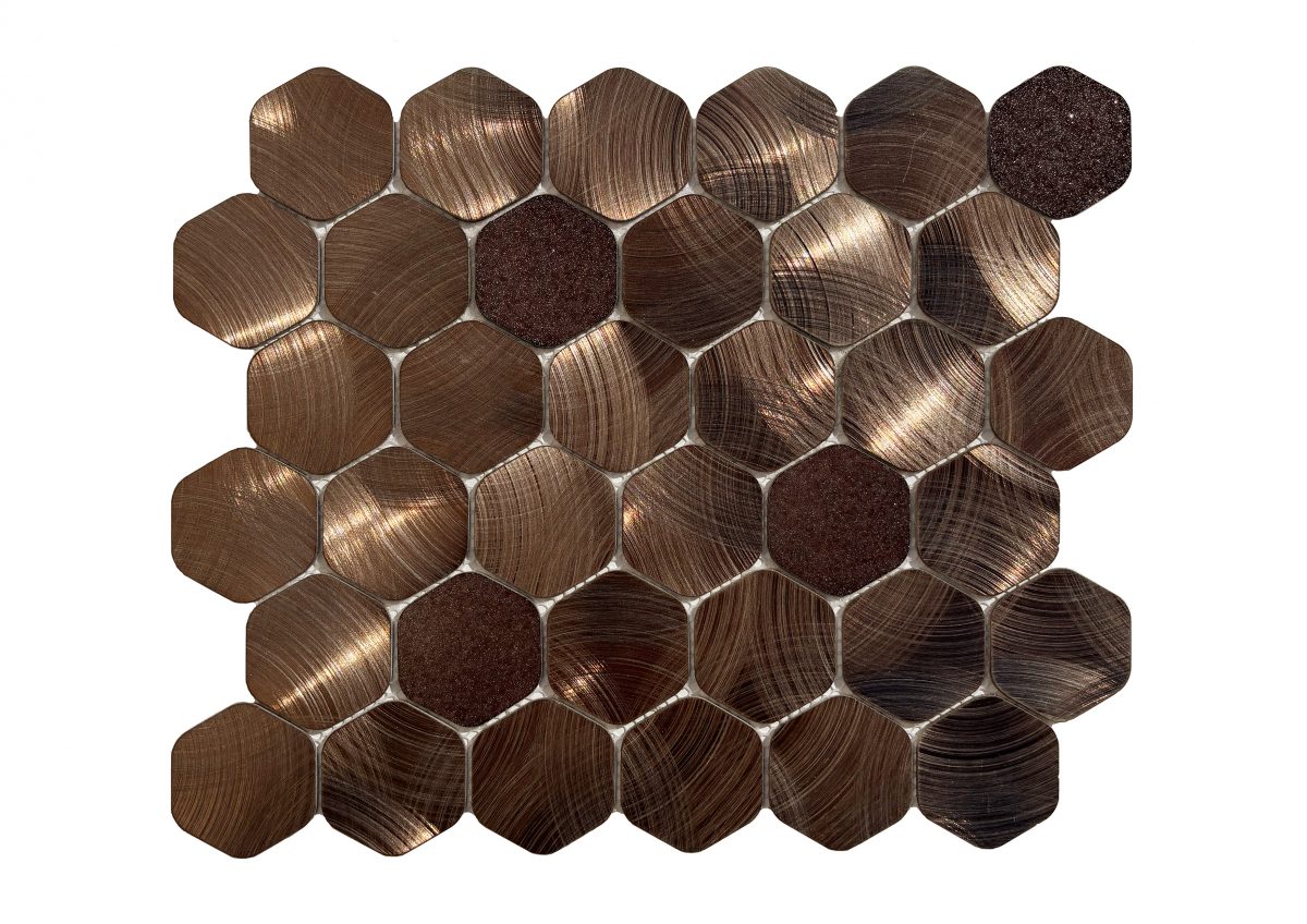 Both versions are available in two metallic shades, Copper and Silver, which enhance their sumptuousness and give their surface a changing light. In the Diamond mosaic, the precision of the assembly of each hexagon produces an enveloping effect, where reflections are multiplied thanks to the brushed finish._x000D_